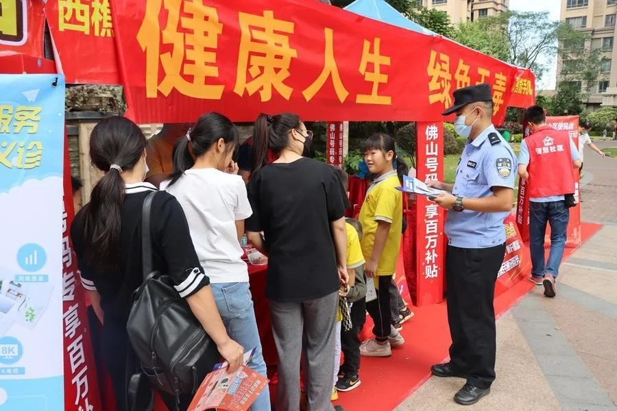为进一步加强群众安全防范意识,营造浓厚的禁毒反诈宣传氛围,为千家万户穿上禁毒反诈“防弹衣”,近日,佛山市公安局南海分局西樵派出所联合中国移动公司,走进西樵悦珑湖住宅小区,开展禁毒反诈宣进家庭宣传活动。