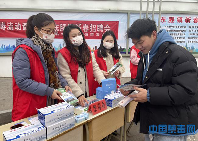 中国禁毒网讯 2月7日,浙江省台州临海市东塍镇在共富工坊举办了2023年新春企业用工招聘会,借助此次契机,禁毒流动课堂走进新春招聘会。