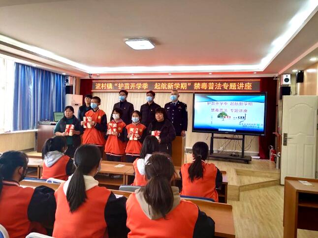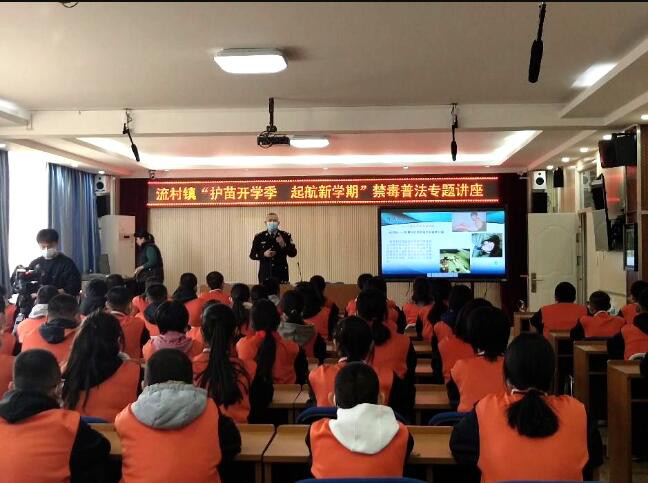 流村镇禁毒工作领导小组办公室联合镇市民活动中心、北流村派出所在流村中学举办“护苗开学季 启航新学期”禁毒普法专题讲座。活动现场,工作人员向学校分送《禁毒法》《北京市禁毒条例》等禁毒宣传资料,派出所有关领导向初一年级全体学生及全体老师讲解什么是毒品、毒品的种类、毒品的危害、青少年如何拒绝毒品、毒品的法律法规以及毒品对个人、对家庭、对社会所造成的危害,告诫广大师生一定要“珍爱生命 拒绝毒品”,切实增强了广大师生拒毒、防毒的意识和能力。