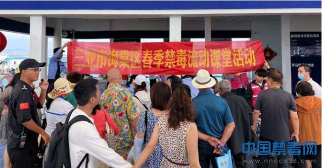 中国禁毒网讯 为进一步浓厚全区禁毒氛围,2月9日,中共三亚市海棠区委政法委员会、三亚市海棠区禁毒委员会办公室、市公安局海棠分局禁毒大队、蜈支洲海岸派出所、区妇联、区司法局、藤海社区,在蜈支洲岛旅游景区开展以“无毒生命灿烂 涉毒生命黯淡”为主题的春季禁毒流动课堂活动。