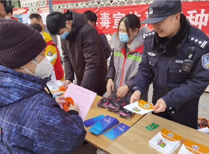 金盏乡平安办借助地区“春送岗位”招聘会契机,联合地区工会一起开展禁毒宣传活动,在现场设置禁毒普法宣传展台,通过摆放仿真毒品模型,分发“进家庭”禁毒读本、《北京市禁毒条例》、禁种铲毒宣传海报、禁毒知识宣传折页等禁毒宣传资料,以及现场咨询解答等方式,向参加招聘会的人员大力普及禁毒知识,引导大家关注“北京禁毒”微信公众号,呼吁广大群众积极参与到禁毒斗争中来,发现违法行为要及时向公安部门举报,切实提高了广大群众依法禁毒的意识,营造了浓厚的禁毒氛围。