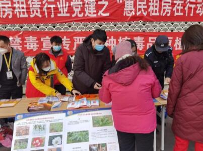 望京街道平安办联合南湖派出所、南湖西里居委会在梦秀商业广场组织开展禁种铲毒宣传活动,工作人员现场悬挂横幅、张贴海报、发放禁毒宣传手册,向参加活动的群众讲解吸食毒品带来的危害、禁毒相关法律法规等知识,并详细介绍了毒品原植物罂粟的具体特征、辨识方法以及非法种植须承担的法律责任,同时鼓励广大群众主动揭发和检举非法种植罂粟等涉毒违法犯罪行为,共建无毒社会。