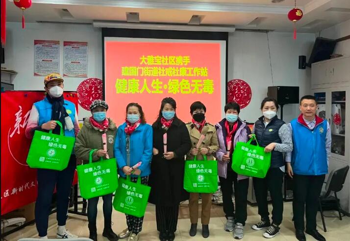 建国门街道在大雅宝社区开展禁毒宣传活动,禁毒社工向守望岗值守人员发放禁毒宣传手册和禁毒宣传品,并耐心解答“新型毒品”种类及危害等问题,结合相关案例告诉大家毒品会给个人、社会、 家庭带来怎样的危害,进一步增强了社区工作人员的禁毒责任意识和防毒拒毒能力。