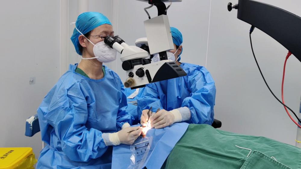 两个孩子的手术时间在下午。手术当天上午,王艳华突然发现自己的手指尖有个小伤口,这让她不由自主有一点紧张。手指不能贴创可贴,这不符合手术室无菌操作的要求;眼科手术精度要求高,如果戴两层手套,则会影响操作。好在有工作人员买来了液体创口贴以保护创口,王艳华很快又投入到手术的准备工作中。