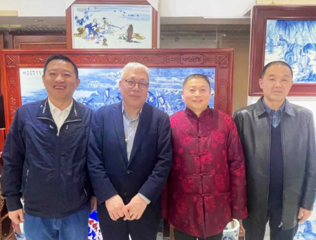 随后,闵天石一行走访了青花人物非遗传承人、禁毒故事青花瓷板连环画创作人李和平老师,对其为禁毒工作做出的贡献表示感谢,并交流了解了其创作过程。该作品创作过程中,将传统文化、禁毒元素、艺术理念有机融合,在陶瓷瓷板上活灵活现地将禁毒碑故事进行展现,给予受众对象第一视觉上的冲击,生动形象地说明了毒品的危害。