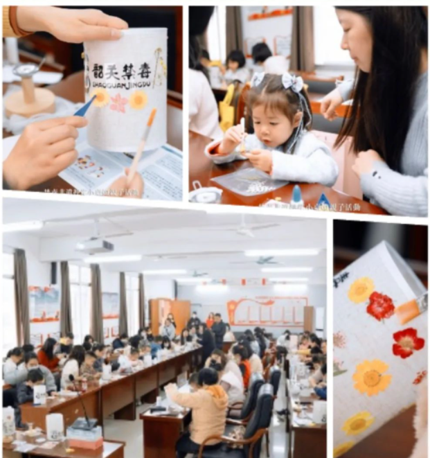 活动邀请精通双面绣、精微绣、融合绣等多种针法和工艺的侯老师进行授课,侯老师向大家展示制作有禁毒宣传语的“押花”台灯作品,用传统又创新的方式分享“押花”文化的发展以及手工技法,引导家长和孩子将花朵、叶子以及定制的禁毒贴纸放在桌面上构图,将花材进行粘贴、调整、固定,最后把做好的灯头、灯座组装在一起,一盏盏独具特色的“押花”台灯就顺利完成了。