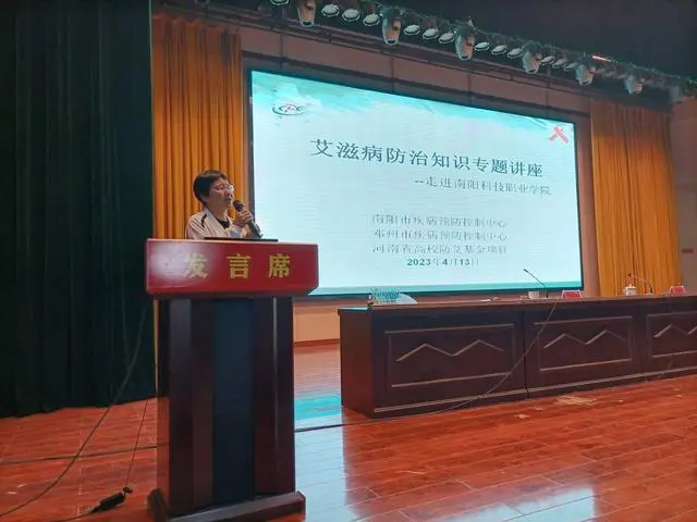 映象网讯 (大象新闻记者 张定有 通讯员 王伟 张国定 裴非)4月13日下午,2023年河南省高校防艾基金项目——“防艾专家进校园”健康宣讲活动走进南阳科技职业学院,在该院学术报告厅举行,来自南阳市疾控中心和邓州市卫健委、邓州市疾控中心的艾防专家们为广大师生奉献了一场融知识性和趣味性为一体的艾滋病防治知识科普讲座。
