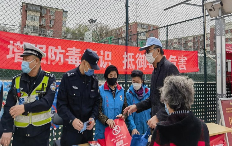 燕园街道在中关园社区广场开展2023年“4·15全民国家安全教育日”暨禁毒宣传活动,现场悬挂条幅、摆放禁毒知识展板,工作人员结合发放的禁毒宣传资料和宣传品向居民群众介绍禁毒法律法规以及毒品对个人、家庭、社会的危害等知识,激发了广大群众与毒品违法犯罪作斗争的积极性,使“平安社区”共建共治共享的理念更加深入人心。