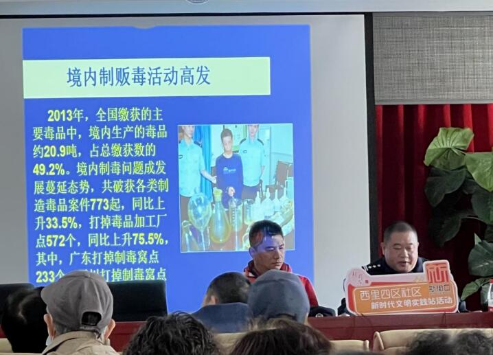 新街口街道禁毒工作站联合西里四社区、新街口派出所开展禁毒宣传活动,禁毒专职社工在现场设立禁毒知识宣传展板,向参加活动的群众发放禁毒宣传手册及禁毒宣传品,派出所民警就禁毒法律法规、毒品的种类与分辨方法、如何拒毒防毒等方面进行了讲解与解答,让社区居民群众深入了解了吸毒的危害,增强了远离毒品的意识,营造了浓厚的全民禁毒氛围。