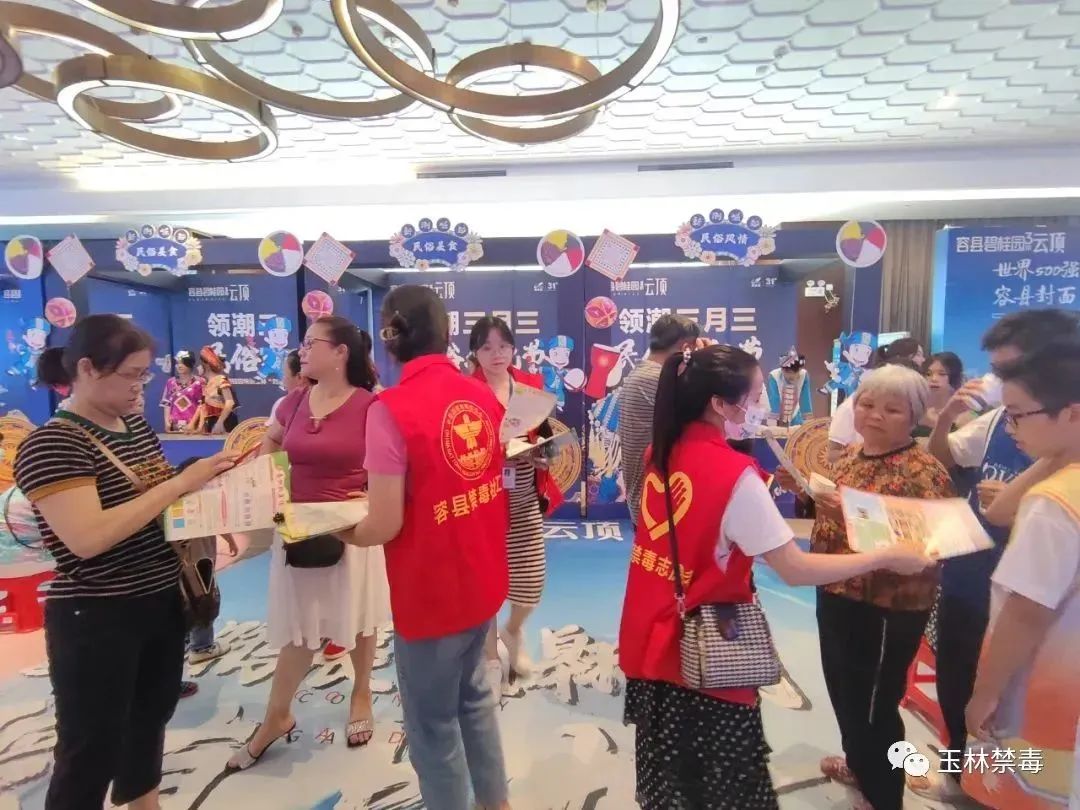 4月21日,容县第十二届“三月三”山歌暨民间文化艺术节在县底镇石龙诗社文化公园举行,民警和禁毒志愿者在活动现场张贴宣传海报、发放禁毒宣传手册,介绍毒品种类以及吸食毒品对个人、家庭、社会造成的严重危害,并在现场为群众解答禁毒问题。