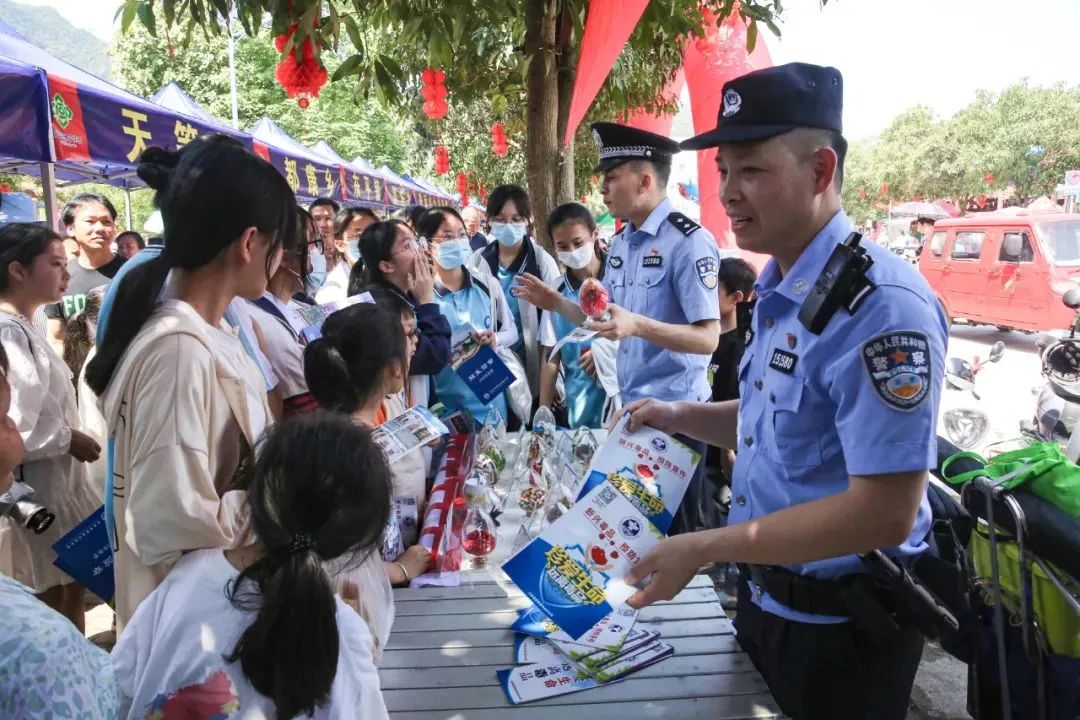 近日,崇左市天等县公安局结合“三月三”传统文化艺术节组织开展禁毒宣传教育活动。活动期间,民警和禁毒社工通过布置禁毒宣传点、摆放仿真毒品模型、悬挂横幅、发放宣传手册等方式,耐心向群众讲解毒品的种类、危害性以及如何辨别、防范新型毒品等毒品预防常识,真正做到珍爱生命,远离毒品。