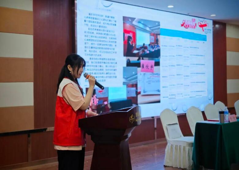 北京联合大学红丝带社团负责人崔欣宇代表高校优秀骨干志愿者进行发言,向所有领导老师及负责人讲述自我成长经历及收获。