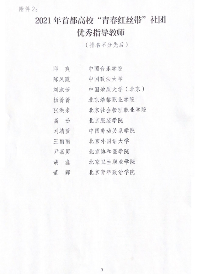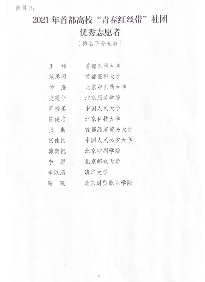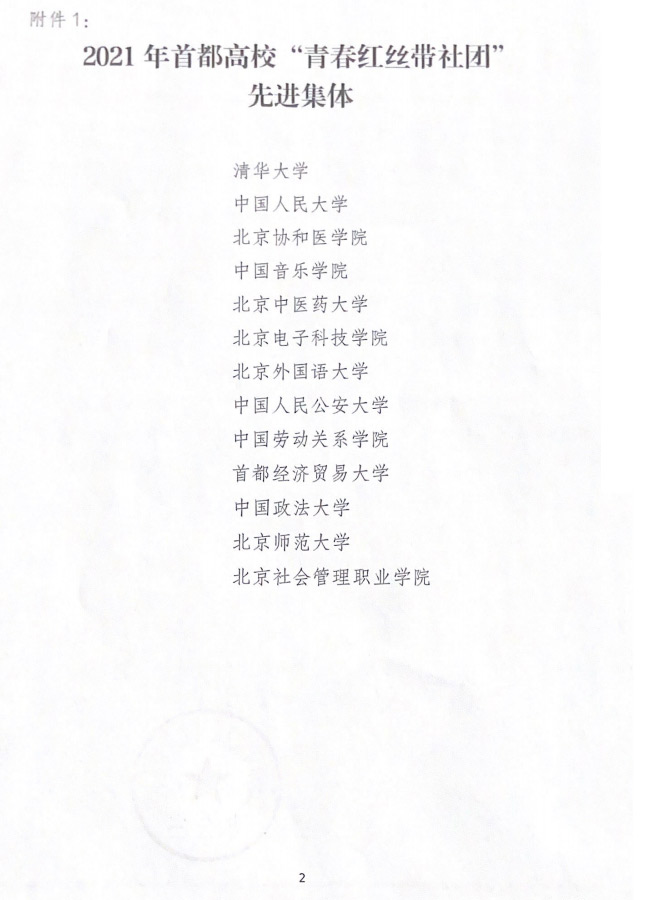 2021年度首都高校青春红丝带社团先进集体和个人