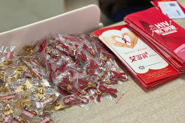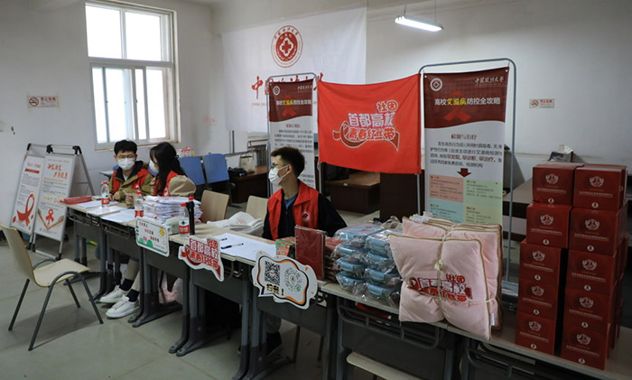 在展台现场,?作?员通过发放防艾宣传折?、笔记本、抱枕等印有防艾知识的展品,普及了预防艾滋病的专业知识,进?步提升了同学们对防艾?作的重视程度。
