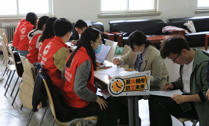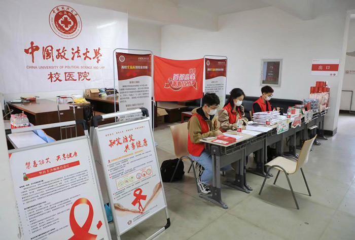 上午8时,校医院医护?员和研究?会?作?员?同在教学楼内开展现场宣传活动。本次宣传活动采?了防艾宣传册发放等多种形式,旨在向??师?们普及艾滋病的基本防治知识。