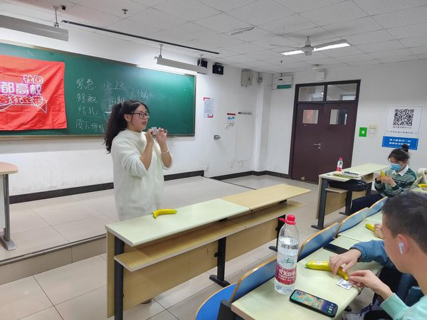 北京交通大学利用防艾同伴教育活动积极推广e检知(二维码印在香蕉教具上了)