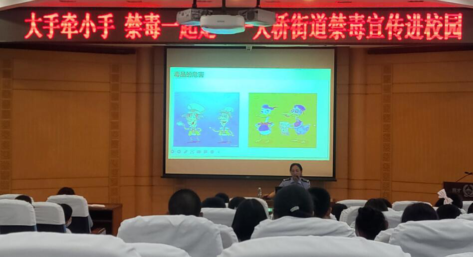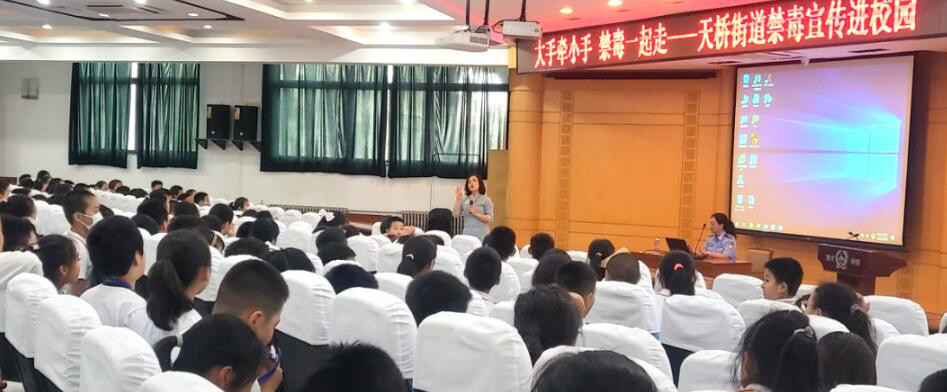 天桥街道禁毒工作站在育才学校组织开展禁毒宣传进校园活动,西城分局禁毒大队民警给400余名师生带来了一堂内容丰富、形式生动的禁毒知识宣讲课,结合青少年生理和心理特点,围绕“什么是毒品、常见的毒品种类、毒品的危害、案例展示、青少年如何识毒防毒”几个方面,用贴近青少年的“网络”“时尚”语言进行讲解和互动,让同学们更加深刻地了解了禁毒知识,也清楚认识到了毒品对个人、家庭、社会的危害性,切实提升了同学们识毒、防毒、拒毒的意识,为共建无毒校园奠定了坚实的基础。