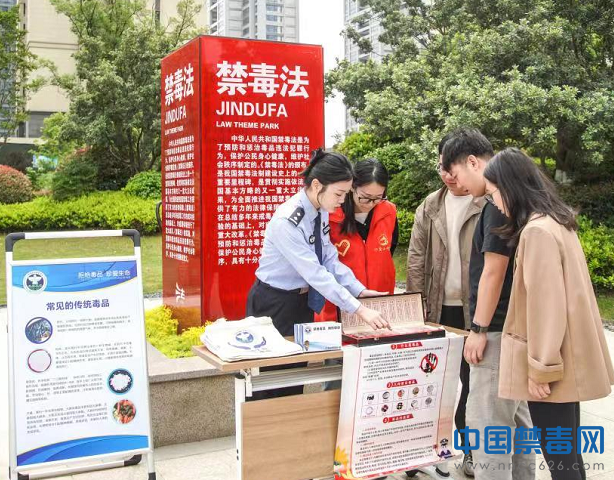 中国禁毒网讯 为压实辖区群众禁毒知晓率,推进法治公园禁毒宣传教育工作,6月5日,浙江省湖州南太湖新区公安分局仁皇山派出所民警联合街道禁毒社工和志愿者,前往仁皇山街道法治主题公园举行以“法治公园好氛围,禁毒宣传来营造”为主题的禁毒宣传活动。