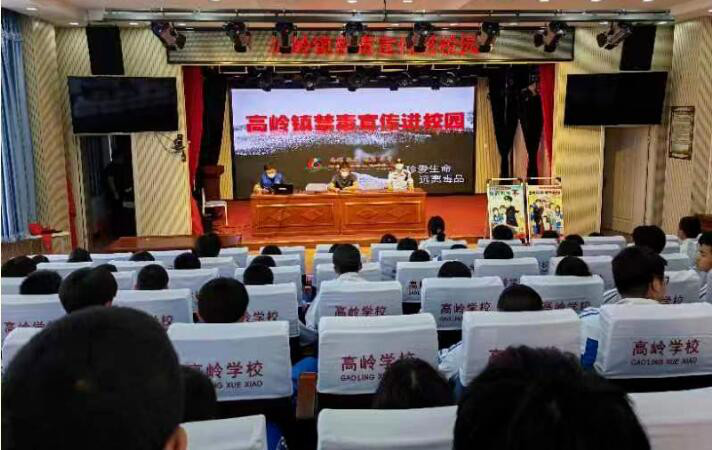 高岭镇综治办联合镇派出所、司法所在高岭中学开展禁毒知识进校园活动,工作人员向广大师生们普及了毒品的种类、识别方法、防范毒品侵害的技巧以及相关法律法规,并结合当前毒情形势和一个个涉毒实例,生动、具体地向广大师生阐述了毒品的危害性,使“珍爱生命,远离毒品”的禁毒理念在广大青少年心中生根,为创建无毒校园打下坚实的基础。