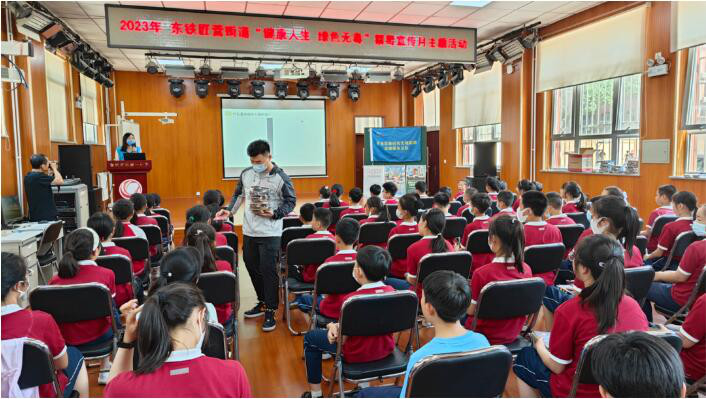 东铁匠营街道平安办、司法所在东铁匠营一小开展禁毒宣传活动。通过播放宣传片、毒品识别视频、分发宣传小礼品等方式,工作人员针对小学生辨别是非能力弱、好奇心强的特点,为同学们介绍新型毒品、新精神活性物质的相关知识,违法犯罪分子诱骗青少年吸毒的常用手段,引导同学们正确认知毒品的危害,要在思想上、心理上、行为上构筑起拒绝毒品的坚实防线,取得了良好的宣传效果。