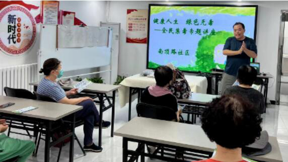 6月以来,南苑街道开展以“健康人生、绿色无毒”为主题,以宣传合成毒品危害为重点的系列活动。为做好禁毒宣传月活动,南苑街道制定《2023年南苑街道全民禁毒宣传月工作方案》,成立以主管领导为组长的南苑街道禁毒宣传月领导小组,统筹推进禁毒宣传工作。6月上旬,以线上宣传为主,利用街道、社区、村微信公众号、LED显示屏、网格群、朋友圈等推送“4分钟看懂毒品”、禁毒公益广告、禁毒条例解读等各类宣传资料,并发动辖区群众积极订阅“中国禁毒”“北京禁毒”微信公众号,有力提高了辖区群众的禁毒意识。
