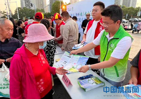 图为禁毒社工向群众发放禁毒宣传资料。中国禁毒网发