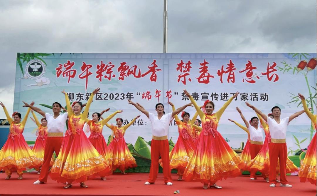 6月20日,柳东新区禁毒委联合柳东新区各成员单位在柳东新区雒容镇人民广场开展“端午粽飘香 禁毒情意长——柳东新区2023年“端午节”禁毒宣传进万家”主题活动。柳东新区管委会、禁毒委副主任陈启英,柳东新区禁毒委各成员单位、两镇、学校以及现场群众1000余人参加此次活动。