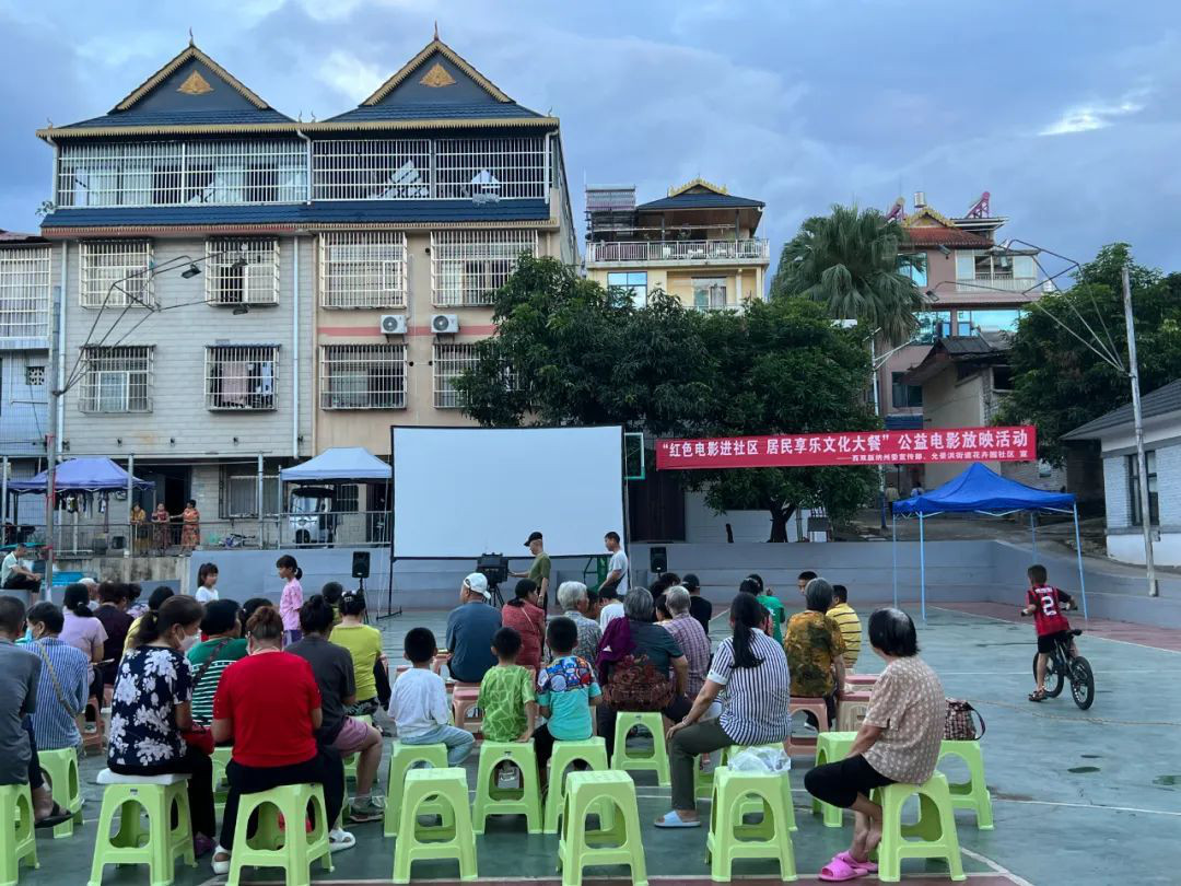 为丰富居民精神文化生活,扎实推动党史学习教育深入群众、深入基层、深入人心,由州委宣传部、允景洪街道花卉园社区联合举办的“红色电影进社区 居民享乐文化大餐”公益电影放映活动在花卉园社区开展。不少社区居民全家总动员,大家坐上凳子,在夏夜的晚风中看得津津有味。