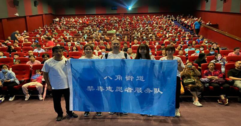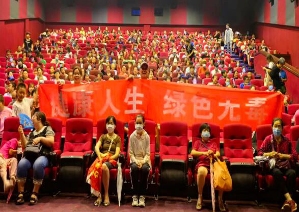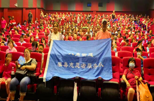 石景山区八角街道组织禁毒专职社工、禁毒志愿者、辖区居民群众450余人集中观看禁毒电影《无毒岛》。观影后,大家纷纷表示要坚决远离毒品,并从自身做起,带动亲朋好友筑牢抵制毒品的思想防线,为建设平安和谐社会贡献自己的力量,更是发自内心地向所有维护社会和谐、英勇奉献、不怕牺牲的禁毒英雄致敬。