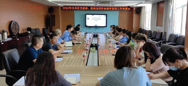 为进一步加强大兴区娱乐场所从业人员及外来务工人员艾滋病、性病及丙肝感染情况监测,根据2023年北京市艾滋病、性病及丙肝防治工作相关要求及区级工作安排,2023年7月18日,大兴区疾控中心组织召开了“2023年大兴区艾滋病、性病及丙肝血清学监测工作布置会”,市公安局大兴分局、区卫生健康委相关领导及辖区10家基层医疗机构相关工作人员参会。