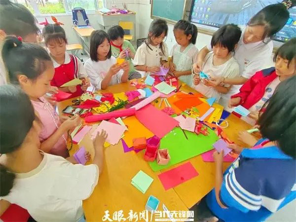 为了锻炼孩子们的动手能力,培养创造能力,志愿者开设了形式多样的手工实践课程。课上,志愿者们利用颜料、彩纸、彩泥等材料,引导孩子们将七彩的童年绘于卡纸上,绘画出小朋友心中的小美好。借用微心愿活动,让小朋友们自主写下心中愿望,从而走进他们的内心世界。课堂寓教于乐,提高了孩子们的动手能力,让他们在活动中感受艺术的魅力。
