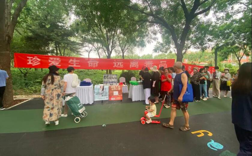 7月28日,恰逢东坝地区创建安全社区活动日,朝阳区东坝乡禁毒办联合区公共安全中心,在东坝郊野公园开展全民禁毒宣传活动。