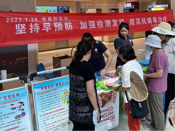 2023年7月28日是第十三个“世界肝炎日”,宣传主题为“坚持早预防,加强检测发现,规范抗病毒治疗”。为更好地向公众宣传肝炎及艾滋病防治知识,号召全社会关注肝炎及艾滋病防控工作,7月26日上午,大兴区疾控中心联合天宫院社区卫生服务中心共同开展了主题日宣传活动。