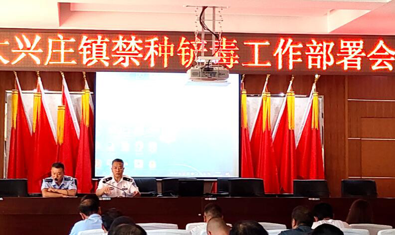 大兴庄镇召开禁种铲毒工作部署会议,法治副镇长、派出所、各科室负责人、各村(居)党支部书记、治保主任、网格长参会。会议要求:一是各村要进一步提高思想认识,扎实稳妥地做好禁种铲毒工作,要按照属地管理责任,摸清底数,做到“早踏查、早发现、早铲除”。二是充分利用大喇叭、公告栏、发放宣传页等多种形式,广泛开展禁种宣传,确保“种毒违法、种毒必铲、种毒必究”观念深入人心。三是在全镇范围内进行排查,最大限度消除盲区,确保实现“零产量、零种植”工作目标。