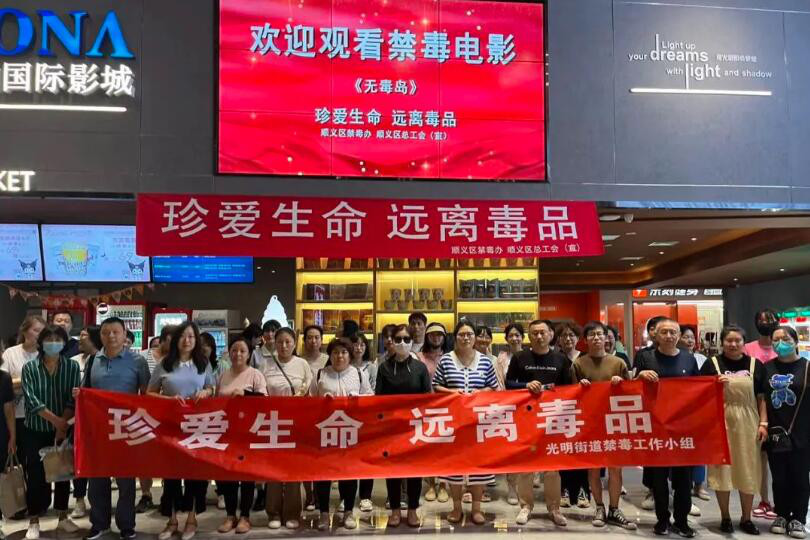 牛栏山镇禁毒工作领导小组组织干部职工集体观看禁毒题材电影《无毒岛》。