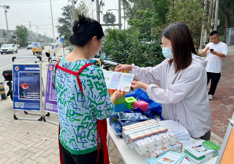 东小口镇禁毒工作领导小组办公室联合镇交通协管办在兰各庄村路口开展“健康生活 绿色无毒”宣传活动,工作人员向参与活动的村民们发放禁毒宣传折页、《北京市禁毒条例》读本等宣传资料,禁毒社工现场给大家讲解毒品的种类与特征、识别方法,解读《条例》中的相关条款,用通俗易懂的语言将禁毒知识传递给大家,使广大村民群众充分认识到了毒品的严重危害性,筑牢了农村禁毒安全防线。