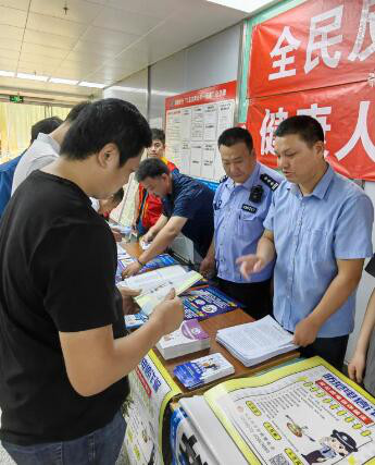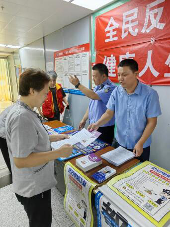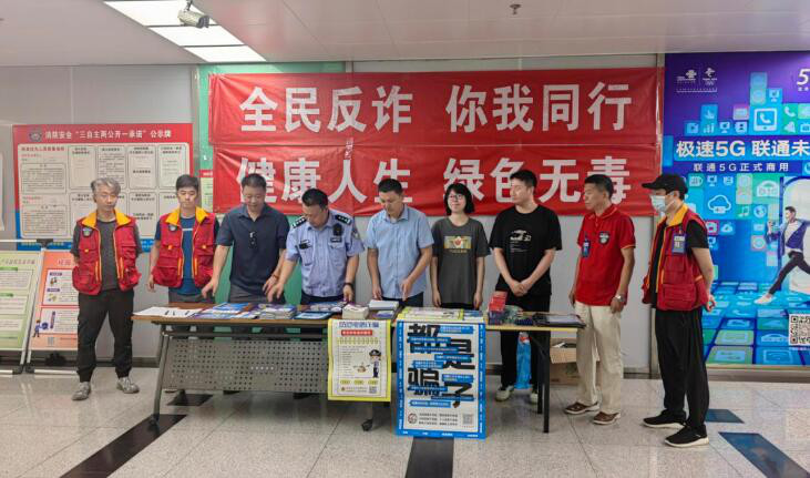 为切实提高群众的拒毒防诈意识,海淀区海淀街道平安建设办公室、海淀派出所、合建楼社区联合在名商大厦开展禁毒反诈宣传活动。