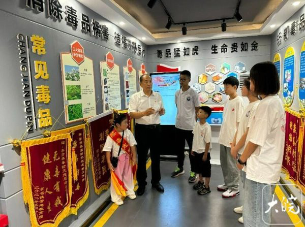 大皖新闻讯 近日,政协江淮行采访团来到位于宿州市埇桥区西关街道一小区内的李彦委员工作室,刚一进门就看到工作室墙壁上张贴的各类禁毒知识和禁毒标语,而李彦也正在给小区内放暑假的青少年们讲解着有关禁毒的科普知识。