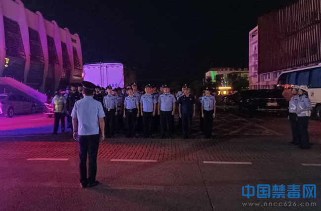 图为夜间统一清查暨禁毒宣传行动现场。中国禁毒网发