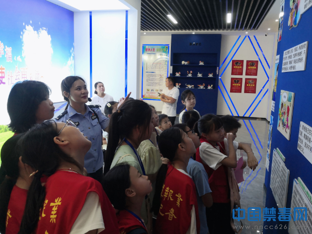 图为民警向小记者们讲解禁毒知识。中国禁毒网发