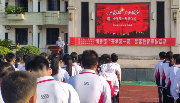 四川省眉山强制隔离戒毒所利用秋季开学的时机,联合仁寿县禁毒办,与禁毒志愿者、网格员、禁毒专职社工一起走进仁寿县满井镇初级中学,对全校400多名师生开展了新学期毒品预防教育第一课。民警通过开展禁毒知识讲座、展示仿真毒品、分发禁毒传单等方式,生动形象地为同学们讲解了毒品的种类、危害及防范方法。