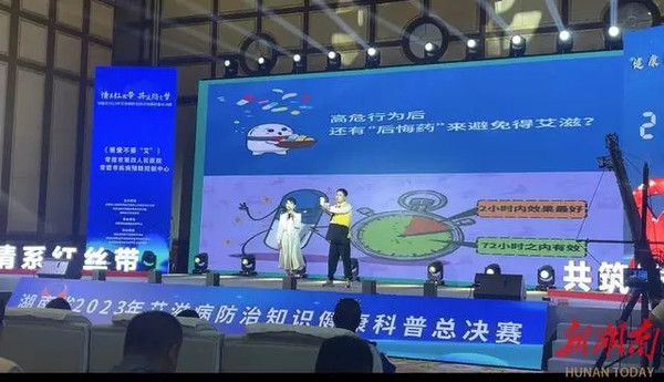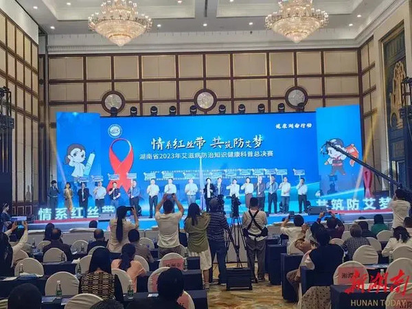 大众卫生报·新湖南客户端10月17日讯(记者 王璐 通讯员 张恒娇 张亚娜)为进一步推进艾滋病防控工作,提升公众防病意识,10月17日,由湖南省人民政府防治艾滋病工作委员会办公室、健康湖南行动推进委员会办公室、湖南省卫生健康委共同主办,湖南省疾病预防控制中心承办的“情系红丝带 共筑防艾梦”湖南省2023年艾滋病防治知识健康科普总决赛在长沙举行。各主办单位负责人、31家省防艾办成员单位和全省14个市州代表队共计200余人参加活动,并线上向公众同步直播。