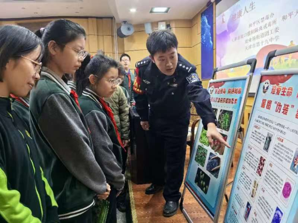 活动现场,派驻警察从毒品的种类、危害和中学生如何防毒以及禁毒相关法律法规等四个方面进行了详细的讲解,并通过展示毒品仿真模型,发放禁毒宣传册等多种形式,引导同学们树立正确的人生观,提高识毒、防毒、拒毒意识。派驻警察还特别提醒学生们如何防范伪装成奶茶、跳跳糖等饮料、零食样式的新型毒品,提升学生们对新型毒品的甄别能力,并且鼓励学生们做禁毒工作的小宣传员,将所学禁毒知识宣传给家人,与家人一同拒绝毒品、珍爱生命,携手共建和谐家庭。