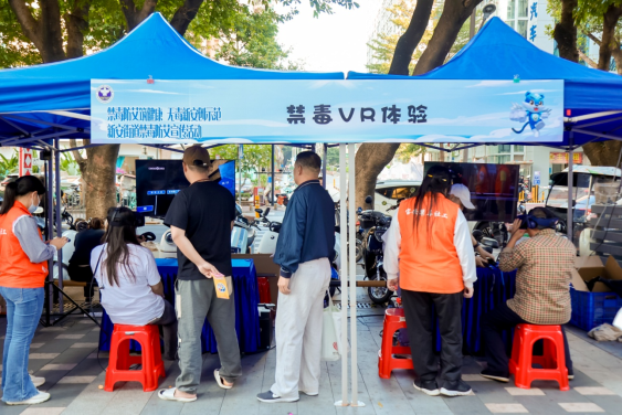 本次宣传活动,形势多样,内容丰富多彩。现场设置了禁毒防艾学习区、禁毒VR体验、禁毒防艾宣传片区、反邪反走私区摸石头过河活动等10多个游戏互动项目。在游戏互动环节,禁毒社工们将禁毒知识元素融入游戏中,将禁毒知识趣味化,让居民在玩中学,学中记。
