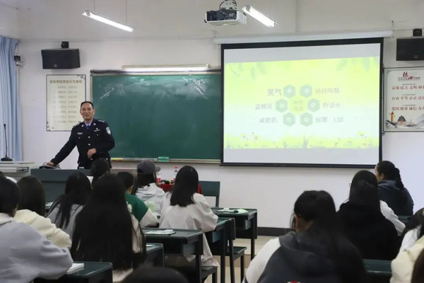 云南省第四强制隔离戒毒所警察以“如何防范毒品侵害”“如何向群众进行禁毒知识讲解”等问题为导向,用真实案例详细讲解了国际国内毒情形势、毒品种类、毒品危害、毒品预防等禁毒知识,为师生们上了一堂生动的禁毒宣传课,敲响了“珍爱生命、远离毒品”的警钟。