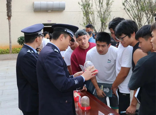 云南省第五强制隔离戒毒所警察走进云南体育运动职业技术学院,开展以“健康人生 绿色无毒 普及毒品常识 提高防范意识”为主题的禁毒宣传活动。通过禁毒宣传展板内容讲解、发放禁毒宣传图册、展示仿真毒品模型等多形式,让学生们直观认识毒品,了解毒品危害,进一步增强同学们在日常学习生活中自身防范意识,自觉抵制诱惑,远离毒品危害。
