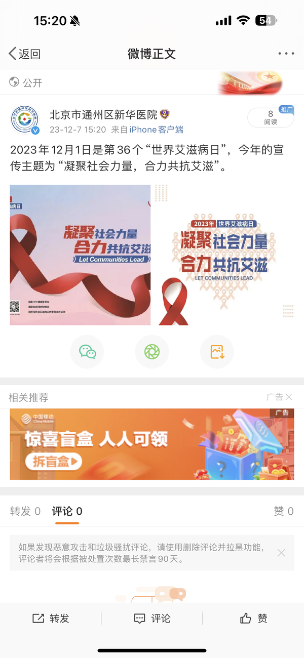 通州区新华医院开展“世界艾滋病日” 主题宣传活动