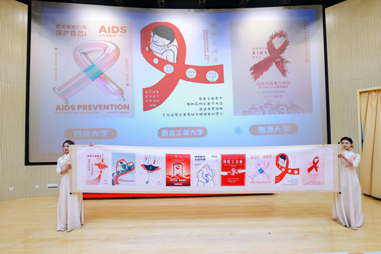 2023青年防艾公益行动启动会现场,发布了9张青年创制的防艾海报。受访者供图