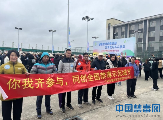 中国禁毒网讯 为进一步营造全民禁毒的浓厚氛围,12月19日,广东省广州市番禺区化龙镇禁毒办联合启航番禺区化龙镇社工站,开展“健康万步走,禁毒伴我行”宣传活动。