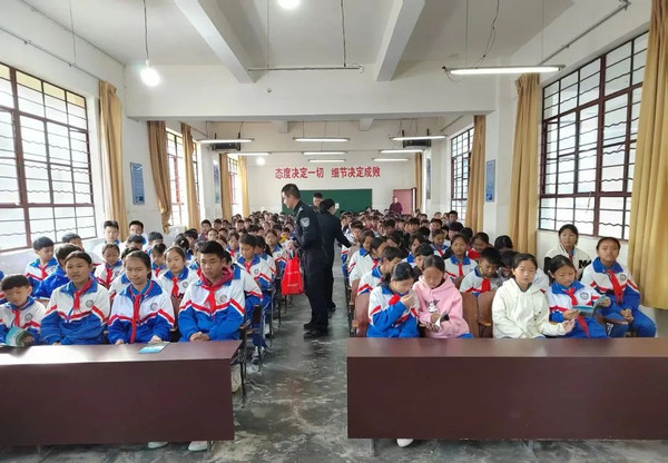 普法宣讲团从“正反”两个方面开展法治教育,通过深入浅出地讲解《未成年人保护法》《义务教育法》《未成年人网络保护条例》《预防未成年人犯罪法》等重点法律开展正面积极教育,教育引导未成年人遵纪守法、努力学习,切勿沉迷网络,树立正确的“三观”;通过选取发生在未成年人身边的毒品、盗窃、性侵、运送他人偷越国(边)境等典型案例以案释法,开展反面警示教育。以“什么是犯罪和刑事责任年龄”为切入点,告诫未成年人年龄并不是违法犯罪的“保护伞”,教育引导未成年人严格规范自身行为。普法宣讲中,卫健委医师向同学们宣讲了“禁毒防艾、心理健康”等生理卫生知识,教育引导学生远离毒品、洁身自爱,做一名身心健康的好少年;派出所民警演示了警用器械处突使用操作,让未成年人更加直观地了解面临不法侵害时如何正确应对,在遇到紧急情况时如何自救和寻求帮助,培养学生学法、知法、守法、用法的法律意识。